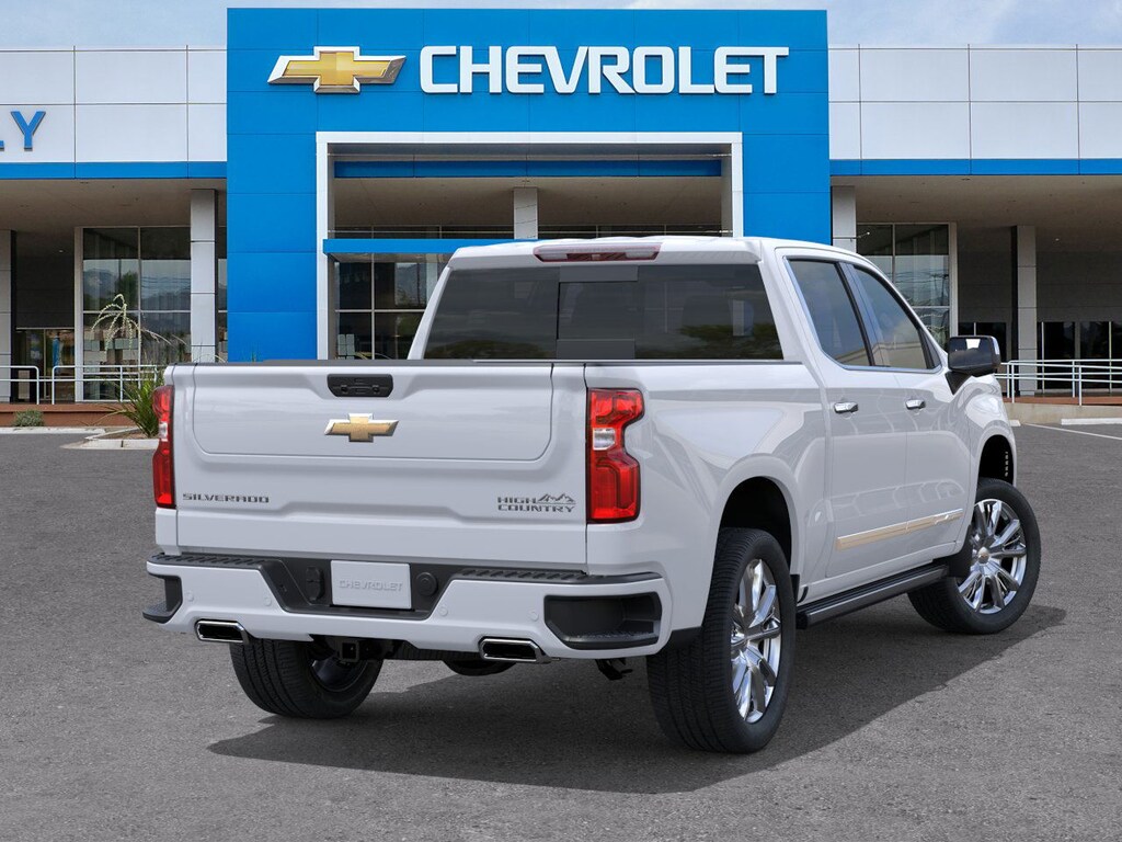 High Country Premium Package: Power Sunroof; 22" X 9" Painted Aluminum Wheels; P275/50R22SL AS BW Tires; All-Weather Floor Liner. High Country Premium II Package: Power-Retractable Assist Steps. Technology Package: 15" Diagonal Multicolor Head-Up Display; Rear Camera Mirror. Preferred Equipment Group 3LZ: Trailer Side Blind Zone Alert; Chrome Assist Steps; Driver Memory; Perforated Leather Seat Trim; SiriusXM with 360L Trial Subscription; Power Sliding Rear Window with Rear Defogger; Safety Alert Seat; Ultrasonic Front and Rear Park Assist; Trailer Camera Provisions; Electric Rear-Window Defogger; Theft Deterrent System (unauthorized Entry); Front Rain-Sensing Wipers; Heated Steering Wheel; 120-Volt Interior Power Outlet; Heated Driver and Front Outboard Passenger Seats; Front Bucket Seats; Color-Keyed Carpeting Floor Covering; OnStar Services Capable; 2nd Row Heated Outboard Seats; Power Front Passenger Windows with Express Up/down; Front Carpeted Floor Mats; Rear Carpeted Floor Mats; 12.3" Multicolor Reconfigurable Digital Display; Galvano Silver Painted Mirror Caps; Power Rear Windows with Express Down; Integrated Trailer Brake Controller; HD Surround Vision; Ventilated Driver and Front Passenger Seats; Power Tilt and Telescoping Steering Column; Keyless Open and Start; Perimeter Lighting; Auto-Dimming Inside Rearview Mirror; LED Cargo Area Lighting; Bluetooth For Phone; Remote Vehicle Starter System; In-Vehicle Trailering System App; Floor Mounted Center Console; Bed View Camera; Rear Cross Traffic Braking; Trailering Package; Up-Level Rear Seat with Storage Package; Standard Tailgate; 2 USB Data Ports; Front LED Fog Lamps; Tire Pressure Monitoring System; Chrome Recovery Hooks; Steering Wheel Audio Controls; Teen Driver; Dual Rear USB Ports (charge Only); Adaptive Cruise Control; Universal Home Remote; 2-Speed Electronic Autotrac Transfer Case; Deep-Tinted Glass; 10-Way Power Driver Seat with Lumbar; Chevytec Spray-On Black Bedliner; Dual Exhaust with Polished Outlets; Chevy Safety Assist; Hitch Guidance with Hitch View; Power Front Windows with Driver Express Up/down; Wrapped Steering Wheel; Power Tailgate; Rear Pedestrian Alert; 10-Way Power Passenger Seat Adjuster with Lumbar; Outside Heated Power-Adjustable Mirrors; Rear Wheelhouse Liners; Auto-Locking Rear Differential. 22" X 9" Painted Aluminum Wheels. Power-Retractable Assist Steps. Power Sunroof. Polar White Tricoat. Adaptive Ride Control Suspension. Multi-Flex Tailgate. 3 Years Siri