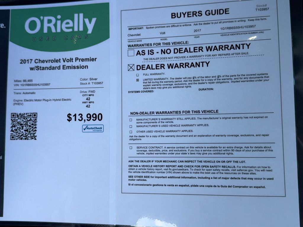 This mid-size car has a Electric Motor high output engine. This vehicle shines with an exquisite metallic silver exterior finish. Front wheel drive on this vehicle gives you better traction and better fuel economy. This 2017 Chevrolet Volt has an automatic transmission. Just the right size to accommodate all your needs. It has room for passengers and plenty of trunk space.