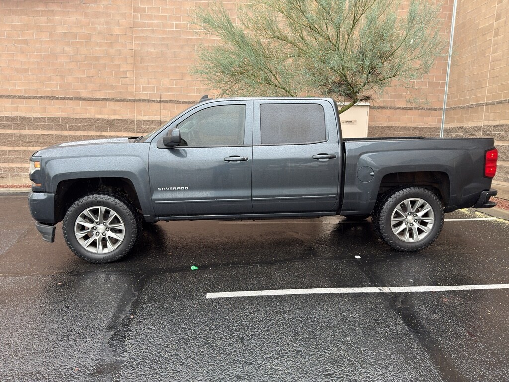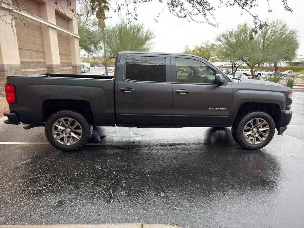 The vehicle features a hands-free Bluetooth phone system. See what's behind you with the back up camera on this unit. This vehicle features steering wheel audio controls. An off-road package is equipped on this model. Start this 2018 Chevrolet Silverado 1500 from inside with remote start. This unit has a clean AutoCheck report, ensuring its impeccable vehicle history. This unit offers Automatic Climate Control for personalized comfort. Quickly unlock the Chevrolet Silverado with keyless entry. Greater towing safety becomes standard with the installed trailer brake. When you encounter slick or muddy roads, you can engage the four wheel drive on this model and drive with confidence. This unit is outfitted with an OnStar communication system. It has a V8, 5.3L high output engine. The vehicle projects refinement with a racy metallic gray exterior. Maintaining a stable interior temperature in this 2018 Chevrolet Silverado 1500 is easy with the climate control system.