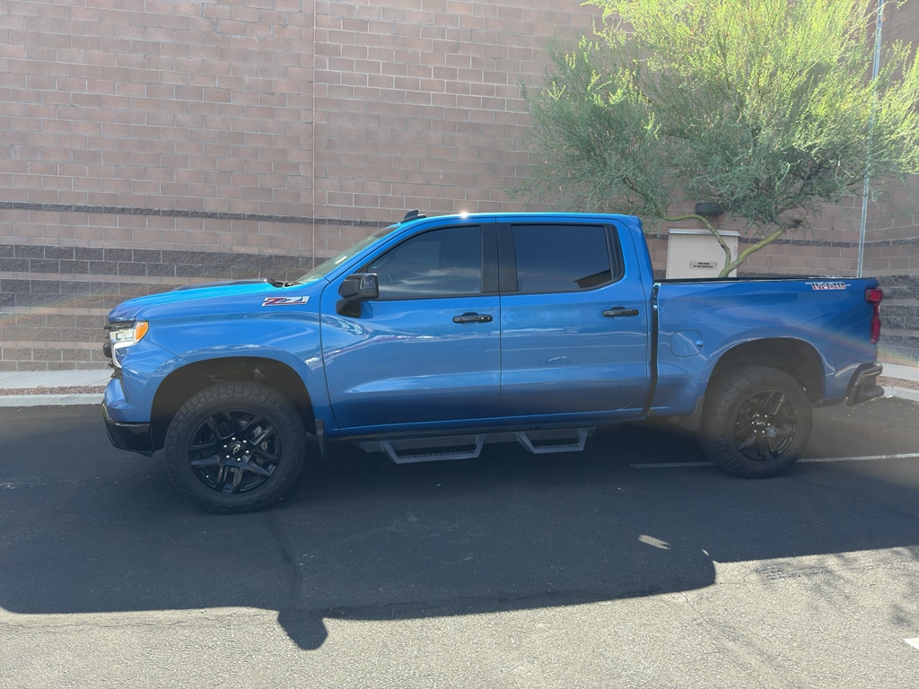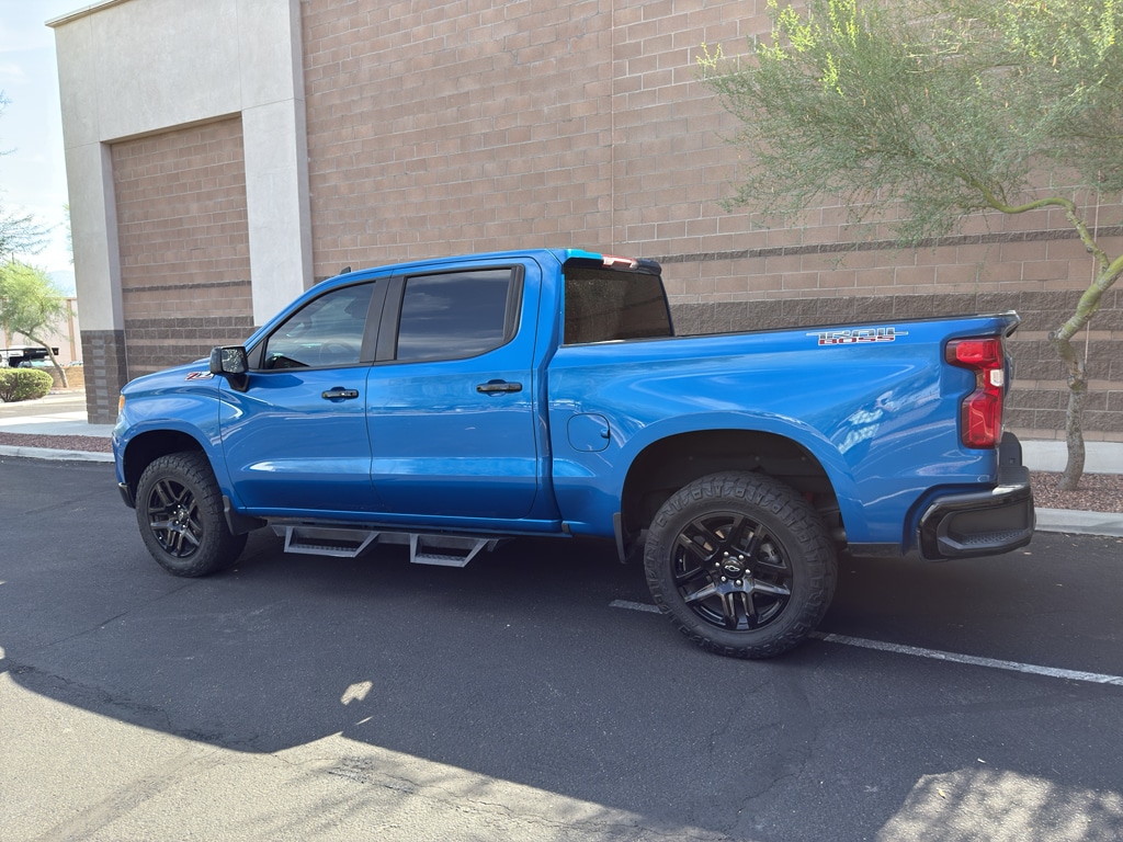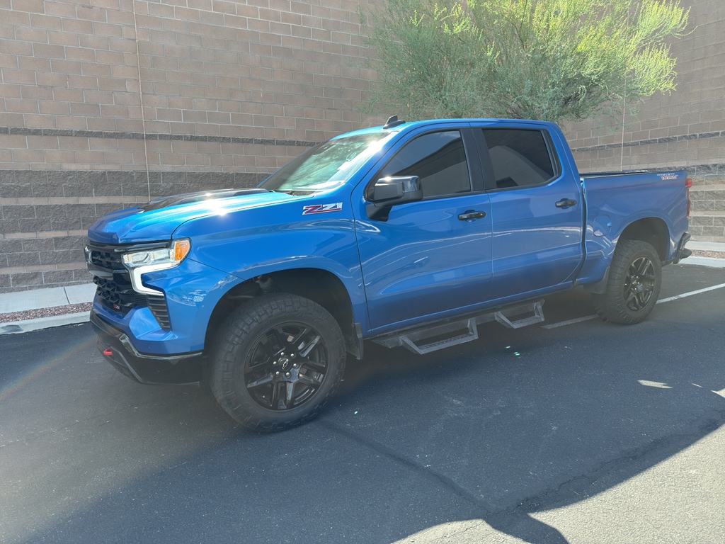 Preferred Equipment Group 2LT: HD Rear Vision Camera; LED Cargo Area Lighting; Rear 60/40 Folding Bench Seat (folds Up); Cloth Seat Trim; SiriusXM with 360L; Bluetooth For Phone; Compass; Trailering Package; Electrical Steering Column Lock; Wireless Phone Projection; Standard Tailgate; Front LED Fog Lamps; Suspension Package; Steering Wheel Audio Controls; Color-Keyed Carpeting Floor Covering; OnStar and Chevrolet Connected Services Capable; Power Front Windows with Passenger Express Down; Inside Rearview Mirror with Tilt; 2-Speed Transfer Case; Deep-Tinted Glass; 12.3" Multicolor Reconfigurable Digital Display; 6-Speaker Audio System; All-Weather Floor Liner; High Gloss Black Mirror Caps; Electronic Cruise Control; Power Rear Windows with Express Down; Chevy Safety Assist; Performance Red Recovery Hooks; Power Front Windows with Driver Express Up/down; EZ Lift Power Lock and Release Tailgate; Convenience Package; Auto-Locking Rear Differential; Heated Power-Adjustable Outside Mirrors. Protection Package: Rear Wheelhouse Liners; Chevytec Spray-On Black Bedliner. Front Bucket Seats. 20" X 9" High Gloss Black Painted Aluminum Wheels. Glacier Blue Metallic. Underseat Storage. Integrated Trailer Brake Controller. **Equipment listed is based on original vehicle build and subject to change. Please confirm the accuracy of the included equipment by calling the dealer prior to purchase.**
