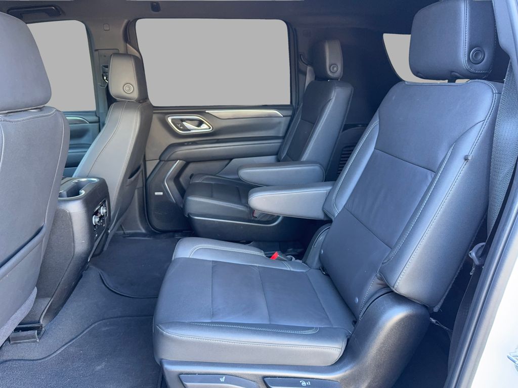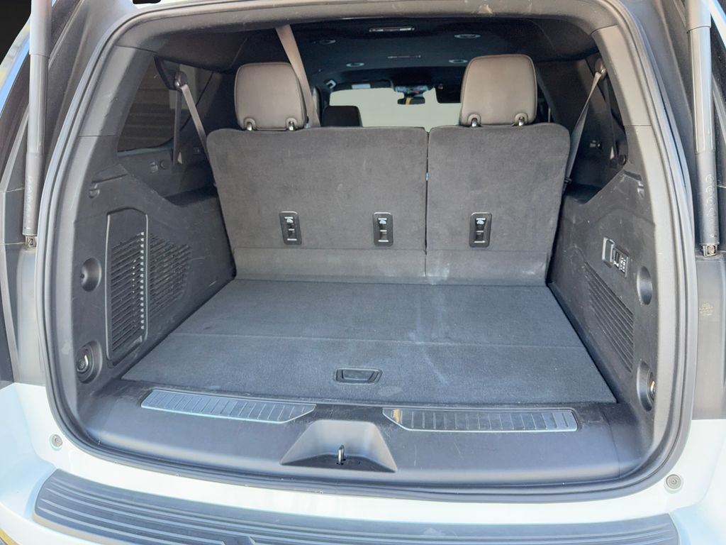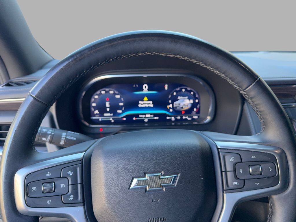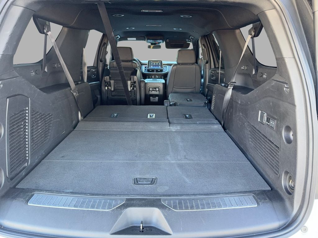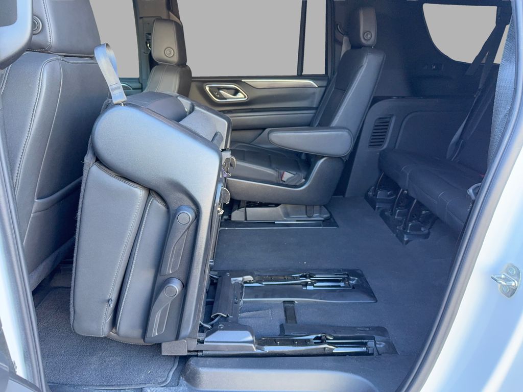 Max Trailering Package: Extra Capacity Cooling System. Advanced Trailering Package: Smart Trailer Integration Indicator; Integrated Trailer Brake Controller; Hitch View with Pan/zoom Image Adjustment. Driver Alert Package: Rear Cross Traffic Alert; Lane Change Alert with Side Blind Zone Alert. Luxury Package: HD Surround Vision; Heated 2nd Row Outboard Seats; 2nd Row Power Release 60/40 Split-Folding Bench Seat; Memory Settings; Power Tilt and Telescopic Steering Column; Rear Pedestrian Alert; Heated Steering Wheel; 3rd Row 60/40 Power-Folding Split-Bench; Outside Heated Power-Adjustable Mirrors. Preferred Equipment Group 2Z7: Bright Front and Rear Door Sill Plates; Leather-Appointed Seating; Remote Start; Hill Descent Control; 20" X 9" Machined Aluminum Wheels; Floor Console with Storage Area; Black Tubular Assist Steps; Heavy-Duty Air Filter; LED Daytime Running Lamps; Driver and Front Outboard Passenger Airbags; 10-Way Power Driver and Passenger Seat Adjusters; Memory Settings For Driver; Heated Driver and Front Passenger Seats; Wireless Charging; Front Bucket Seats; Universal Home Remote; Color-Keyed Carpeting Floor Covering; Front Skid Plate; Front High-Approach Angle Fascia; Hands-Free Rear Power Programmable Liftgate; Chevrolet Infotainment 3 Premium System Radio; Bose 9-Speaker Stereo Audio System Feature; 2-Speed Active Electronic Autotrac Transfer Case; 1st and 2nd Row Color-Keyed Carpeted Floor Mats; Enhanced Driver Information Center; Red Recovery Hooks; SiriusXM with 360L; Wrapped Steering Wheel; 275/60R20SL AT BW Tires; Infotainment Display; Auto-Dimming Inside Rearview Mirror. Power Release 2nd Row Bucket Seats. **Equipment listed is based on original vehicle build and subject to change. Please confirm the accuracy of the included equipment by calling the dealer prior to purchase.**