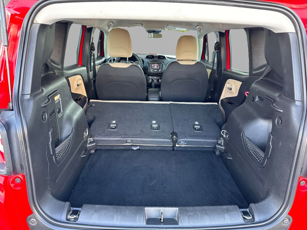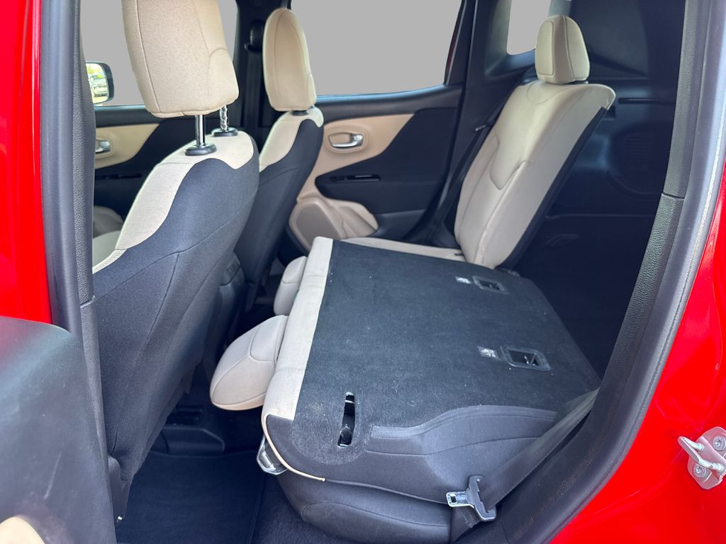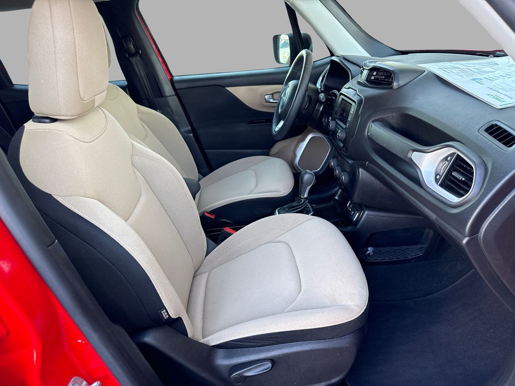 Bluetooth technology is built into this unit, keeping your hands on the steering wheel and your focus on the road. This unit has a clean AutoCheck report. See what's behind you with the back up camera on this unit. This Jeep Renegade excites both driver and bystanders with a polished red exterior with racy lines. The vehicle has a 4 Cyl, 2.4L high output engine. Maintaining a stable interior temperature in the vehicle is easy with the climate control system. This Jeep Renegade is front wheel drive. With the keyless entry system on the Jeep Renegade you can pop the trunk without dropping your bags from the store. Enjoy the tried and true gasoline engine in the vehicle. It features cruise control for long trips. The Electronic Stability Control will keep you on your intended path. The high efficiency automatic transmission shifts smoothly and allows you to relax while driving.