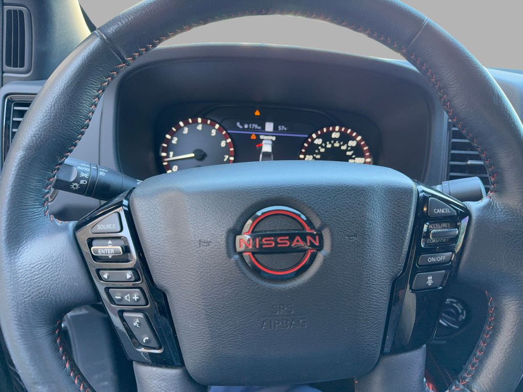 PRO-4X Comfort & Convenience Package: Bed Under-Rail Lighting; Remote Engine Starter; Trailer Hitch with Wiring Harness; 120V Power Outlet in Bed; Heated Front Seats; Heated Steering Wheel; Intelligent Around View Monitor (I-AVM); Wireless Charging For Personal Devices; Utili-Track System; Heated Outside Mirrors; Spray-In Bedliner; 120V Power Outlet in Rear Center Console. Technology Package: Rear Sonar System; Rear Automatic Braking (RAB); Traffic Sign Recognition (TSR); High Beam Assist (HBA); Blind Spot Warning (BSW); Rear Cross Traffic Alert (RCTA); Intelligent Cruise Control (ICC); Lane Departure Warning (LDW). Off-Road Style Step Rails. Bed Access Package. Off-Road Protection Package. PRO-4X Mud Flaps. **Equipment listed is based on original vehicle build and subject to change. Please confirm the accuracy of the included equipment by calling the dealer prior to purchase.**
