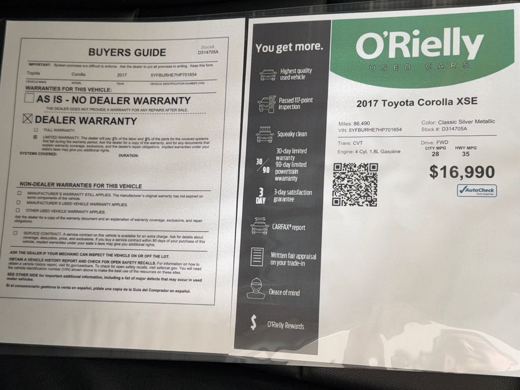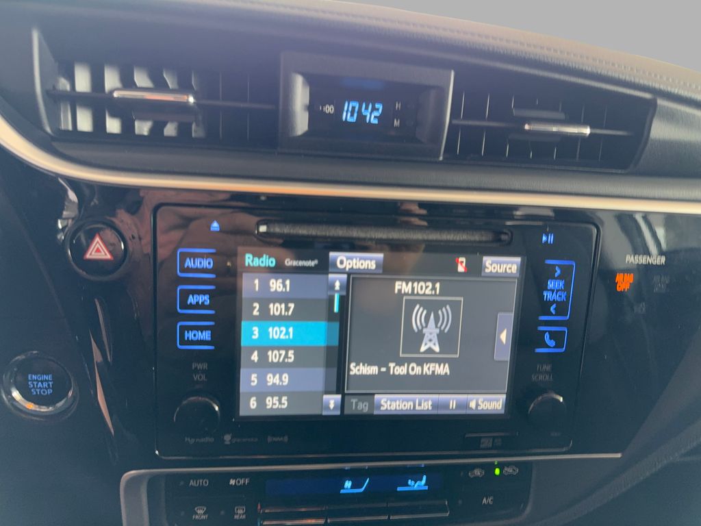 You'll never again be lost in a crowded city or a country region with the navigation system on this Toyota Corolla. Protect it from unwanted accidents with a cutting edge backup camera system. The leather seats in this model are a must for buyers looking for comfort, durability, and style. This unit has automated speed control that adjusts to maintain a safe following distance, enhancing highway driving convenience. It offers Automatic Climate Control for personalized comfort. Bluetooth technology is built into this model, keeping your hands on the steering wheel and your focus on the road. This model has a clean AutoCheck report, ensuring its impeccable vehicle history. Maintaining a stable interior temperature in this Toyota Corolla is easy with the climate control system. This model has a 4 Cyl, 1.8L high output engine. The vehicle shines with an exquisite metallic silver exterior finish. It is front wheel drive. Easily set your speed in this 2017 Toyota Corolla with a state of the art cruise control system. Increase or decrease velocity with the touch of a button.