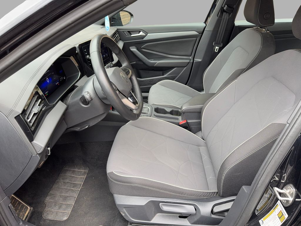 This model's Forward Collision Warning feature alerts drivers to potential front-end collisions. The vehicle has auto-adjust speed for safe following. This model keeps you comfortable with Auto Climate. The vehicle comes equipped with Android Auto for seamless smartphone integration on the road. This model features a hands-free Bluetooth phone system. Protect this 2025 Volkswagen Jetta from unwanted accidents with a cutting edge backup camera system. The vehicle has only one previous owner, verified by AutoCheck. The vehicle offers Apple CarPlay for seamless connectivity. This 2025 Volkswagen Jetta has a clean AutoCheck report. It enhances safety with a blind spot monitor, alerting drivers to potential dangers in adjacent lanes. This 2025 Volkswagen Jetta has a 5 Cyl, 2.5L high output engine. This vehicle is painted with a sleek and sophisticated black color. Set the temperature exactly where you are most comfortable in this vehicle. The fan speed and temperature will automatically adjust to maintain your preferred zone climate.